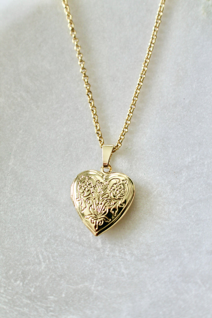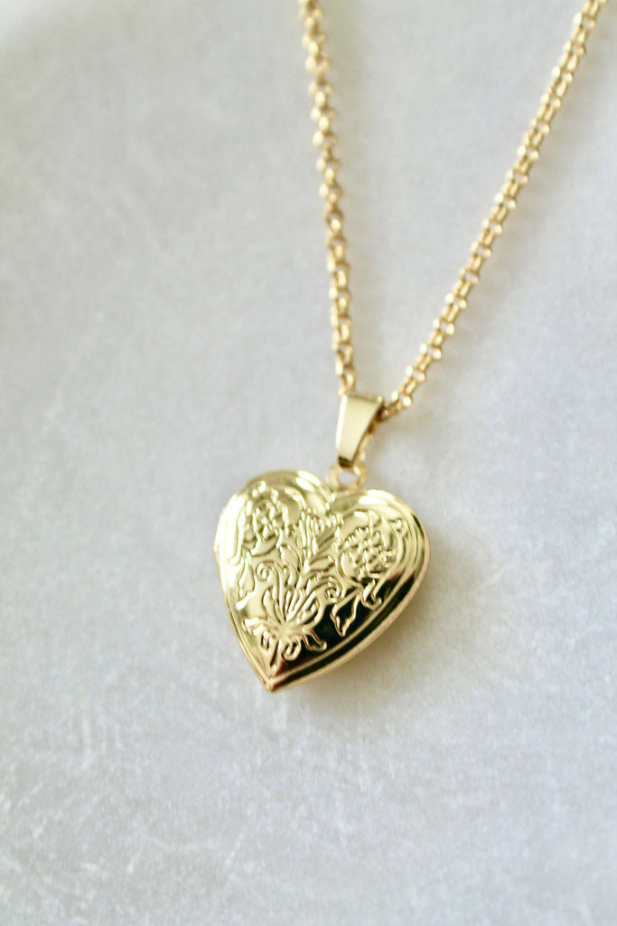 Gold heart locket pendant necklace